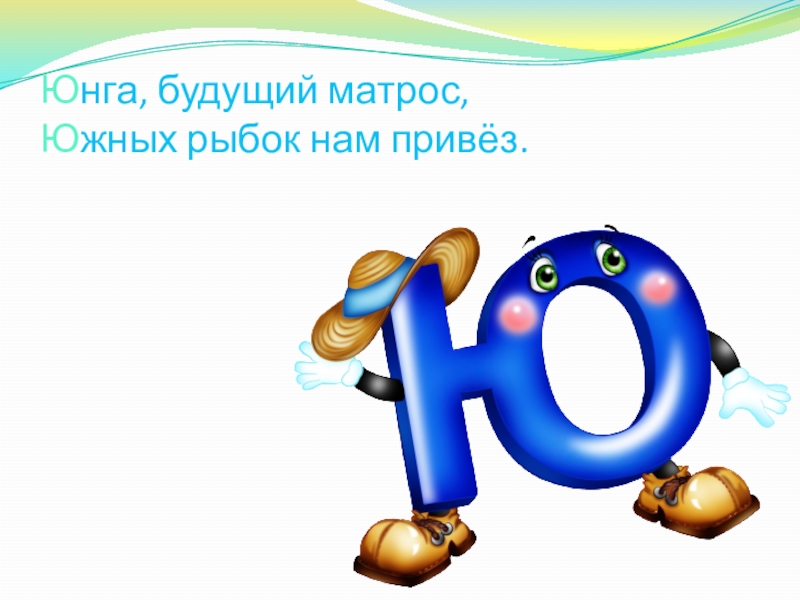 Слайд 28Юнга, будущий матрос, Южных рыбок нам привёз.