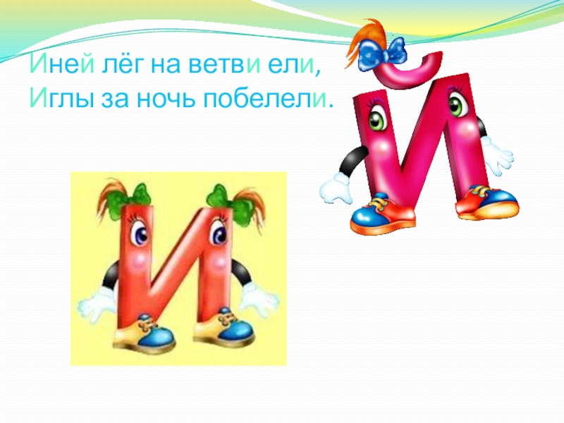 Слайд 10Иней лёг на ветви ели, Иглы за ночь побелели.