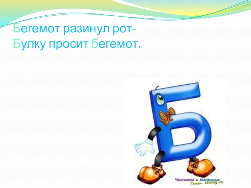 Слайд 3Бегемот разинул рот- Булку просит бегемот.