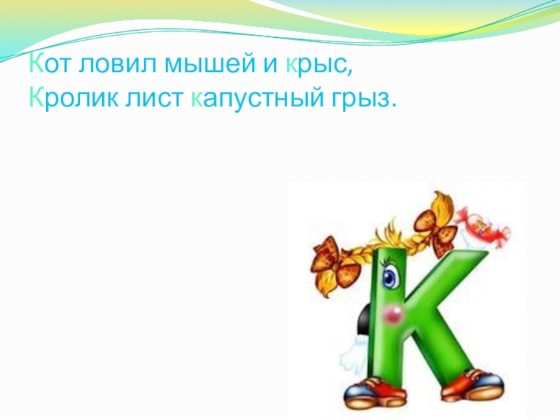 Слайд 11Кот ловил мышей и крыс, Кролик лист капустный грыз.