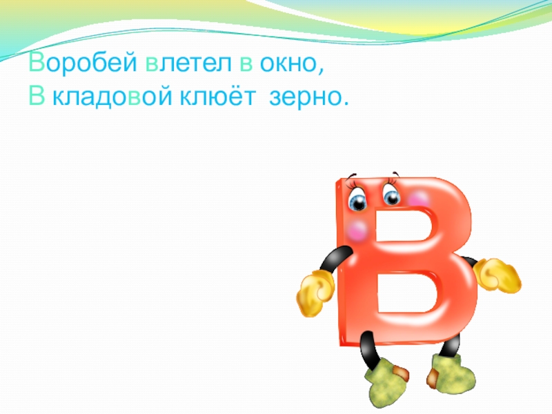 Слайд 4Воробей влетел в окно, В кладовой клюёт зерно.