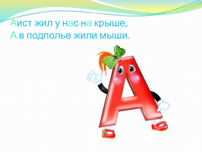 Слайд 2Аист жил у нас на крыше, А в подполье жили мыши.