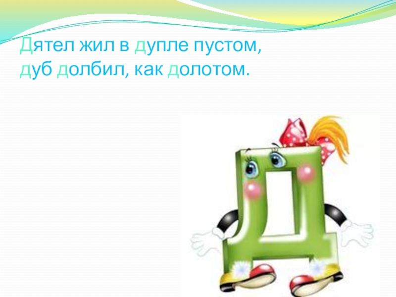 Слайд 6Дятел жил в дупле пустом, дуб долбил, как долотом.