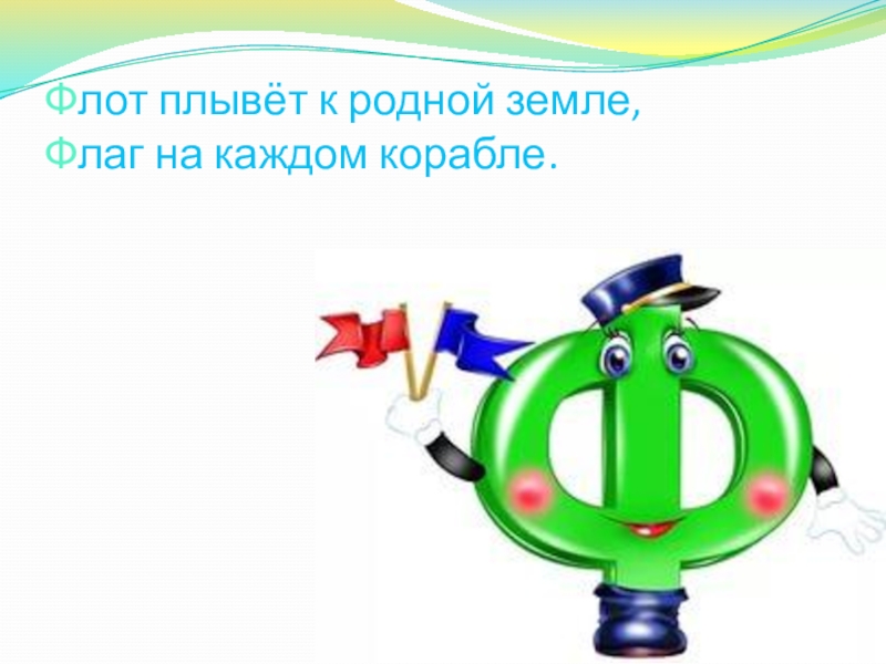 Слайд 21Флот плывёт к родной земле, Флаг на каждом корабле.
