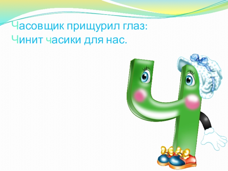 Слайд 24Часовщик прищурил глаз: Чинит часики для нас.