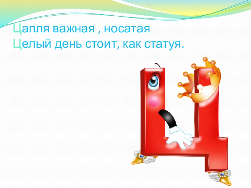 Слайд 23Цапля важная , носатая Целый день стоит, как статуя.