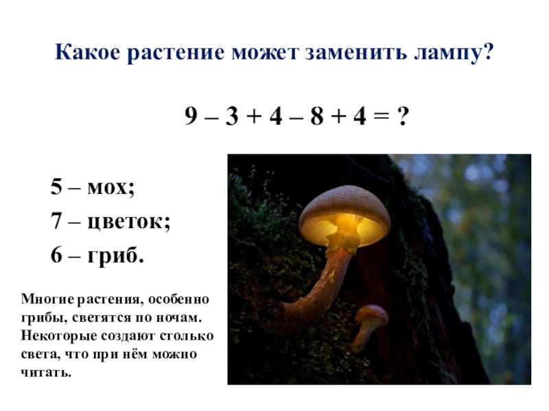 Многие растения, особенно грибы, светятся по ночам. Некоторые создают столько света, что при нём можно читать.