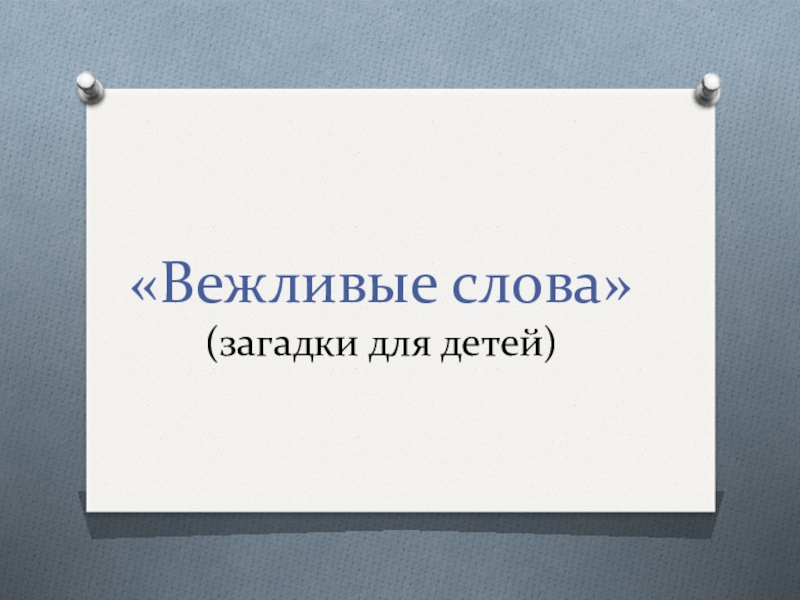 Слайд 1 «Вежливые слова» (загадки для детей)