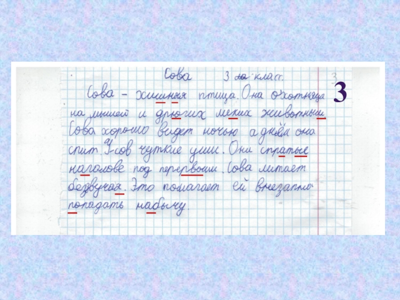 В данном случае слабые доли — это звуки, которым при устной речи не уделяется внимания, например, мы произносим «лошка» («ложка») или «на стале стаяла чашка с малаком» (на столе стояла чашка с молоком). Именно эти «ошибки» ребёнок должен подчеркнуть. Также очень важно дописывать и чётко проговаривать окончания всех слов.