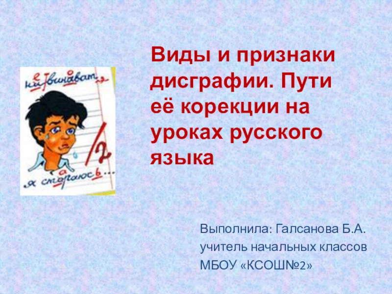 Виды и признаки дисграфии. Пути её корекции на уроках русского языка