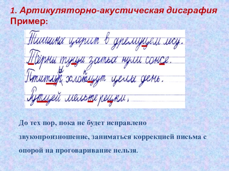 Слайд 71. Артикуляторно-акустическая дисграфия