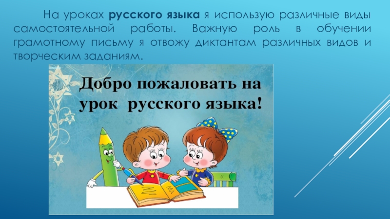 виды самостоятельной работы. Важную роль в обучении грамотному письму я отвожу диктантам различных видов и творческим заданиям.