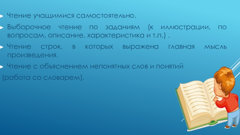 Выборочное чтение по заданиям (к иллюстрации, по вопросам, описание,