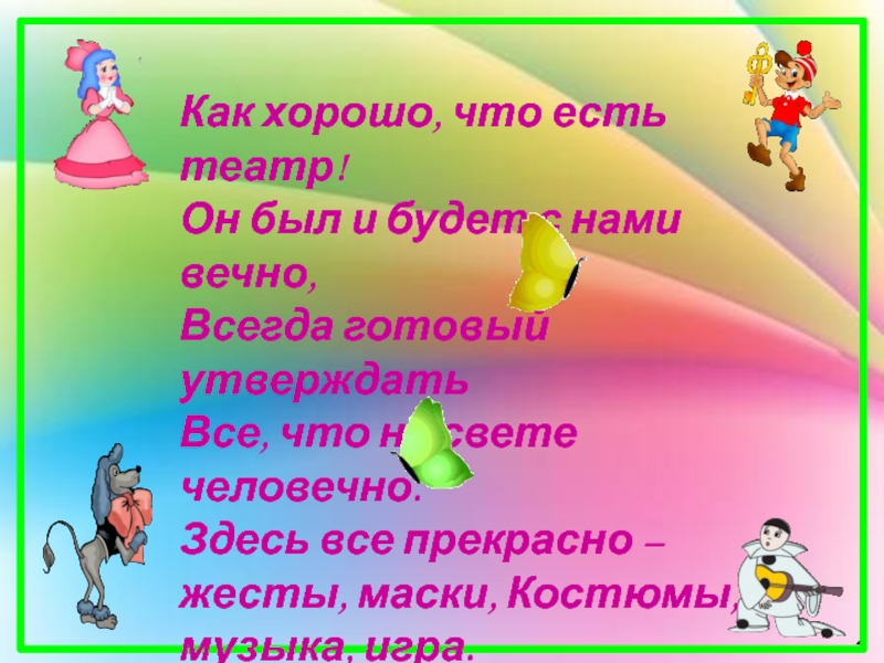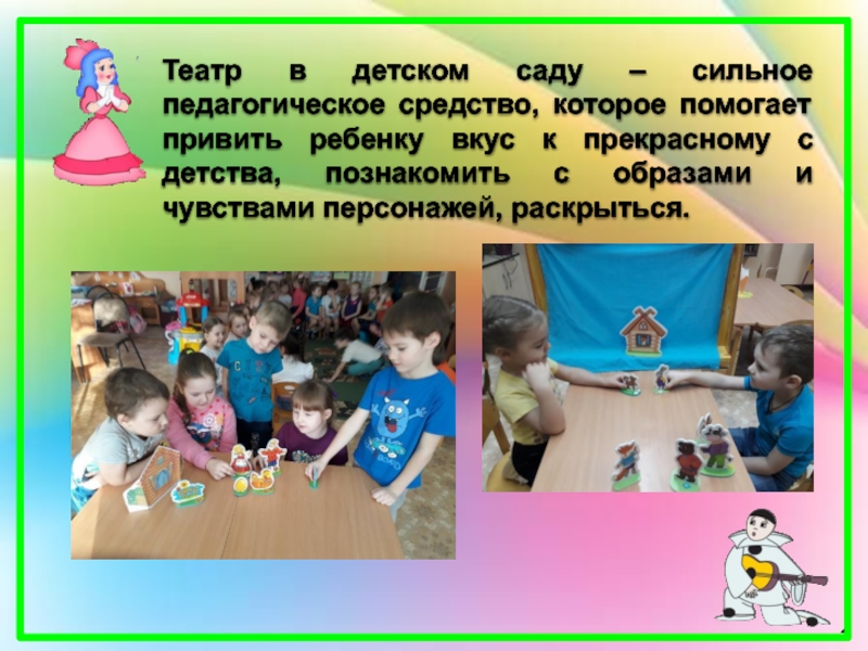 Слайд 4Театр в детском саду – сильное педагогическое средство, которое помогает привить