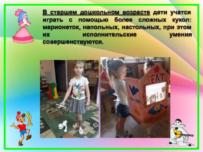 кукол: марионеток, напольных, настольных, при этом их исполнительские умения совершенствуются.