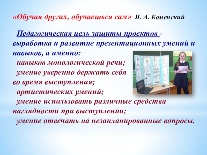 Слайд 7«Обучая других, обучаешься сам» Я. А. Коменский
