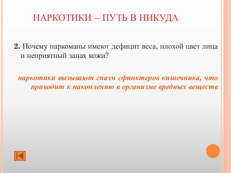НАРКОТИКИ – ПУТЬ В НИКУДА 2. Почему наркоманы имеют дефицит веса, плохой цвет лица и неприятный запах