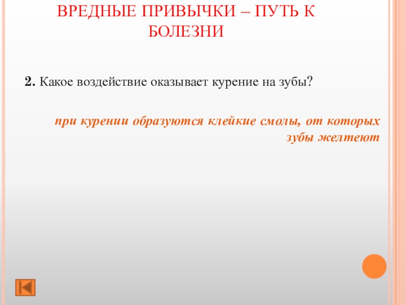 ВРЕДНЫЕ ПРИВЫЧКИ – ПУТЬ К БОЛЕЗНИ 2. Какое воздействие оказывает курение на зубы? при курении образуются клейкие