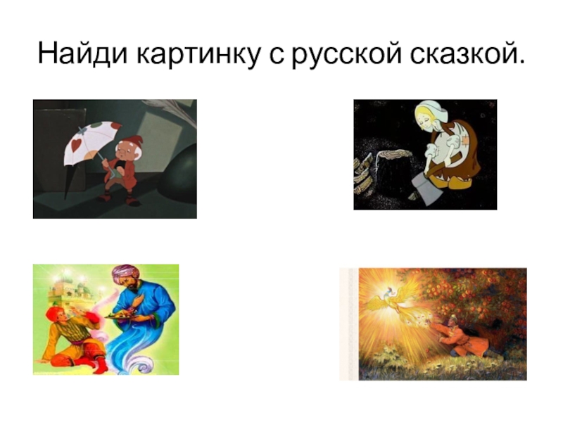Слайд 5Найди картинку с русской сказкой.