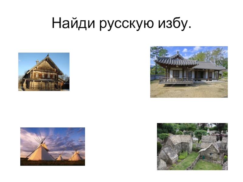 Слайд 6Найди русскую избу.