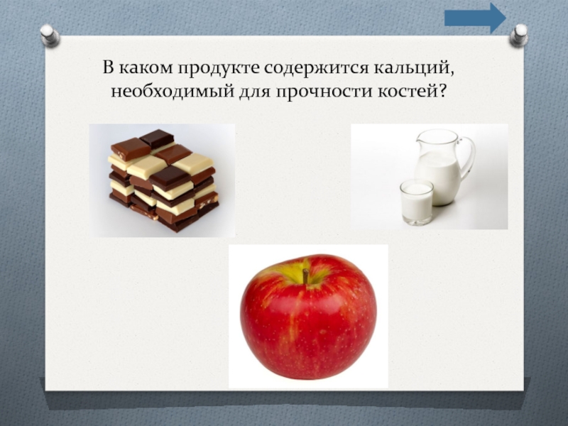 Слайд 26В каком продукте содержится кальций, необходимый для прочности костей?