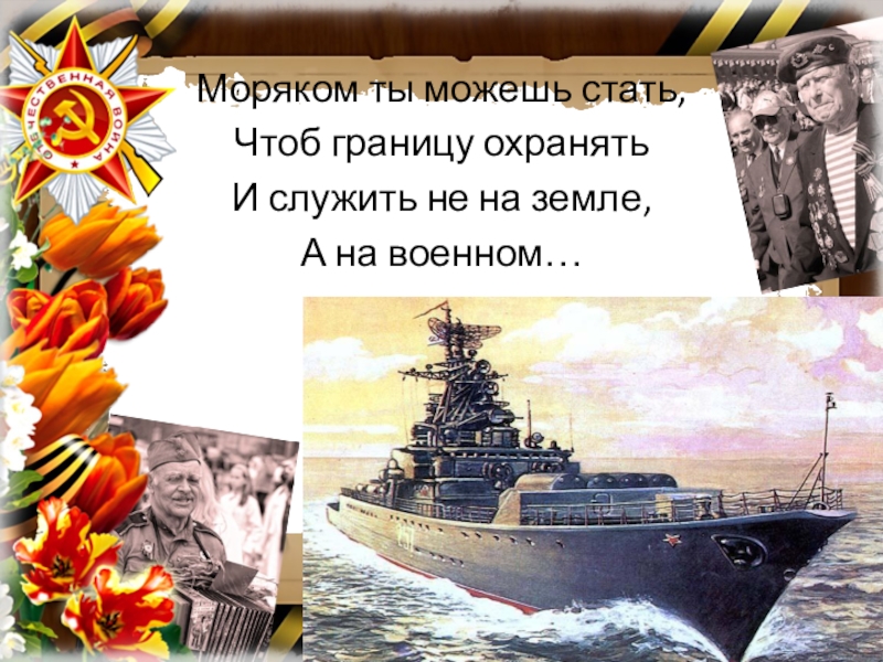 Моряком ты можешь стать,Чтоб границу охранятьИ служить не на земле,А на военном…