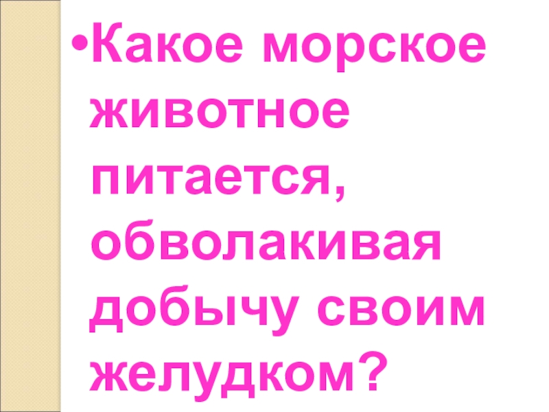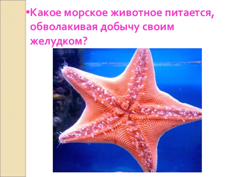 Слайд 21Какое морское животное питается, обволакивая добычу своим желудком?