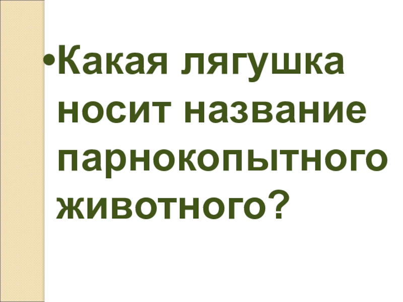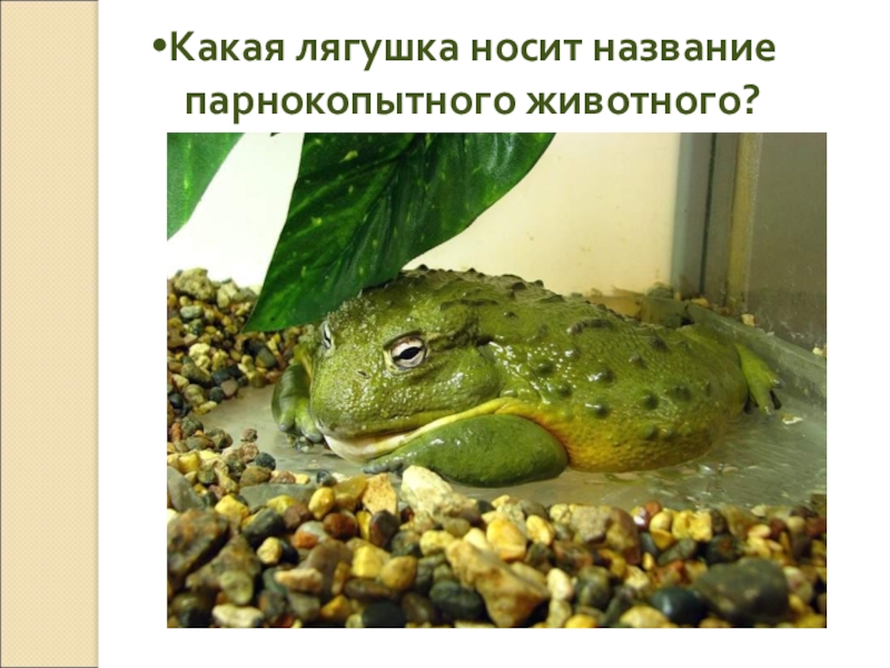 Слайд 2Какая лягушка носит название парнокопытного животного?