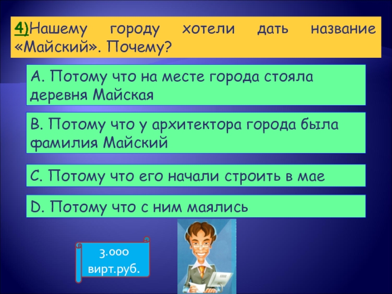 B. Потому что у архитектора города была фамилия Майский