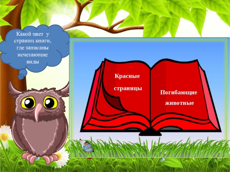 Слайд 14Какой цвет у страниц книги, где записаны исчезающие виды