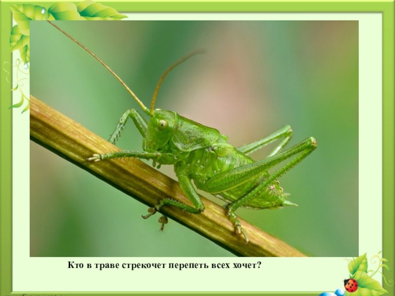 Слайд 30Кто в траве стрекочет перепеть всех хочет?