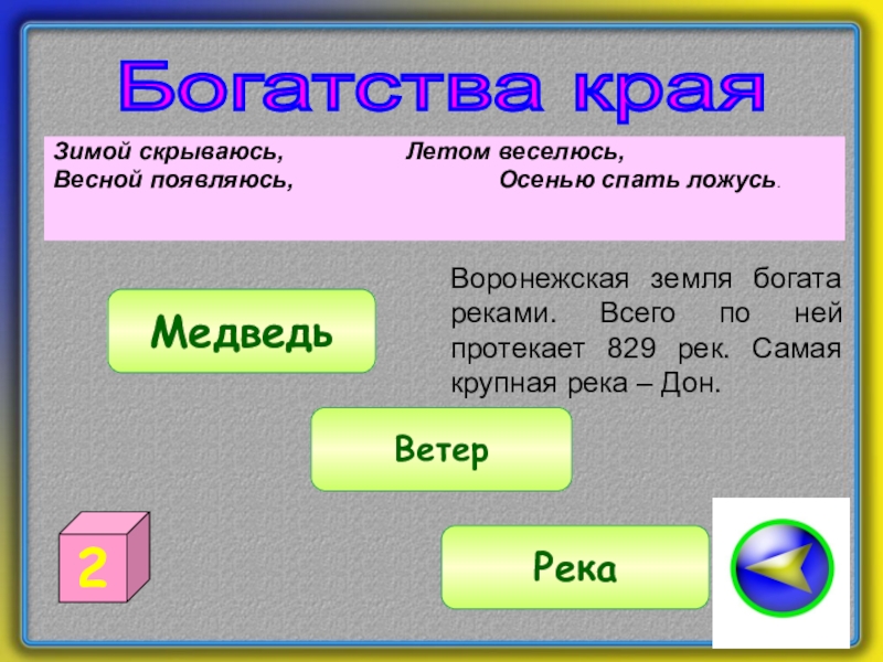 Воронежская земля богата реками. Всего по ней протекает 829 рек. Самая крупная река – Дон.