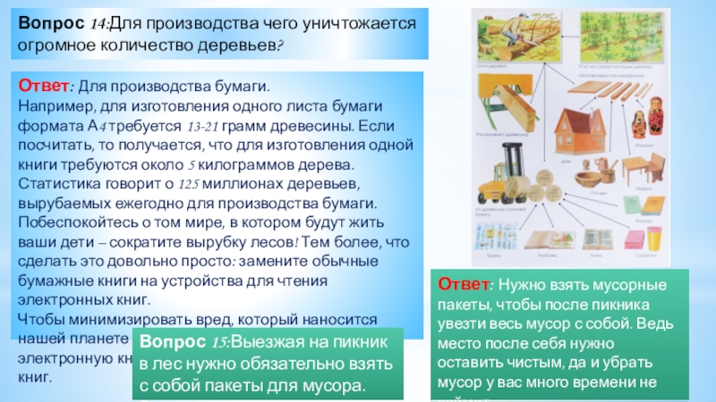 Вопрос 15:Выезжая на пикник в лес нужно обязательно взять с собой пакеты для мусора. Зачем?