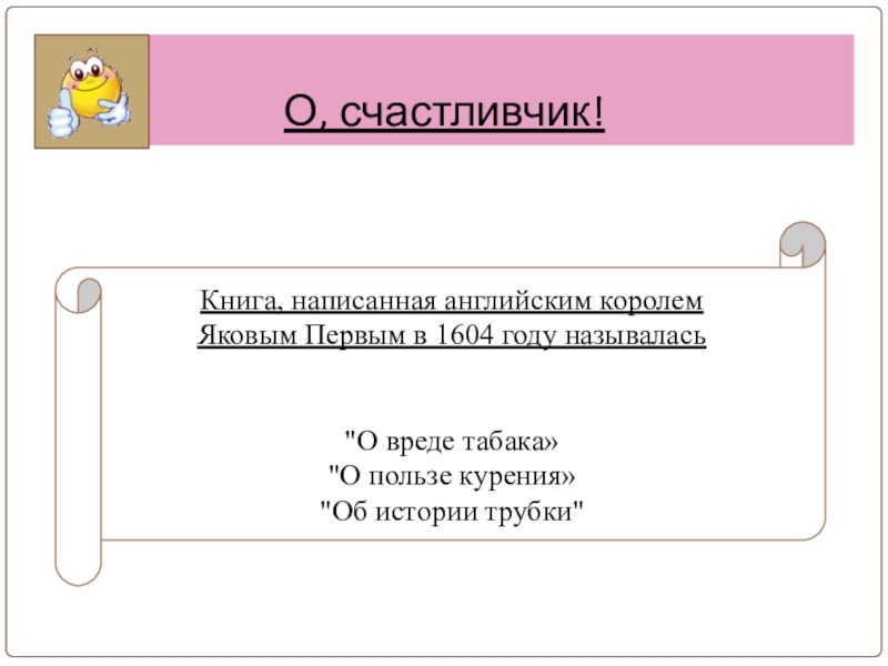 О, счастливчик!В какой стране табак в 16 веке был объявлен