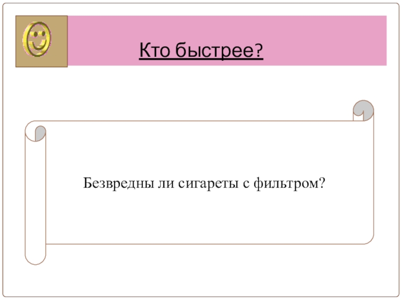 Кто быстрее?Безвредны ли сигареты с фильтром?
