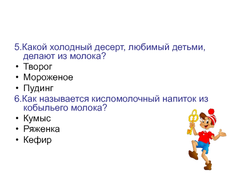 5.Какой холодный десерт, любимый детьми, делают из молока?