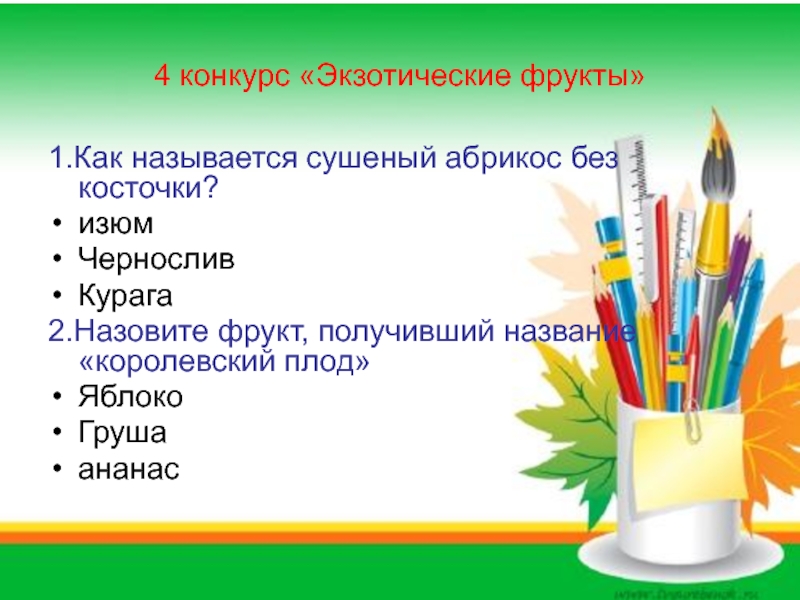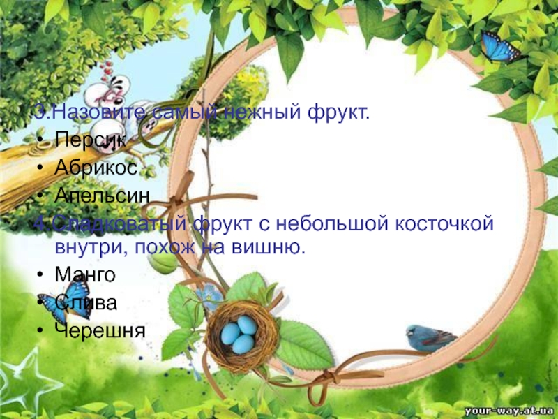 4.Сладковатый фрукт с небольшой косточкой внутри, похож