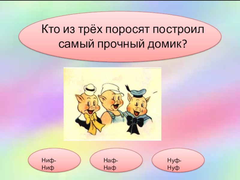 Кто из трёх поросят построил самый прочный домик?Ниф-НифНаф-НафНуф-Нуф