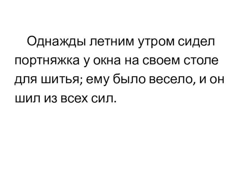 Однажды летним утром сиделпортняжка у окна на своем столедля шитья; ему было весело, и он шил из