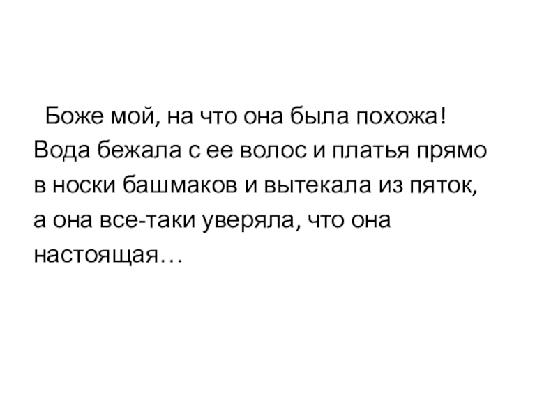 Боже мой, на что она была похожа!Вода бежала с ее волос и платья прямов носки башмаков