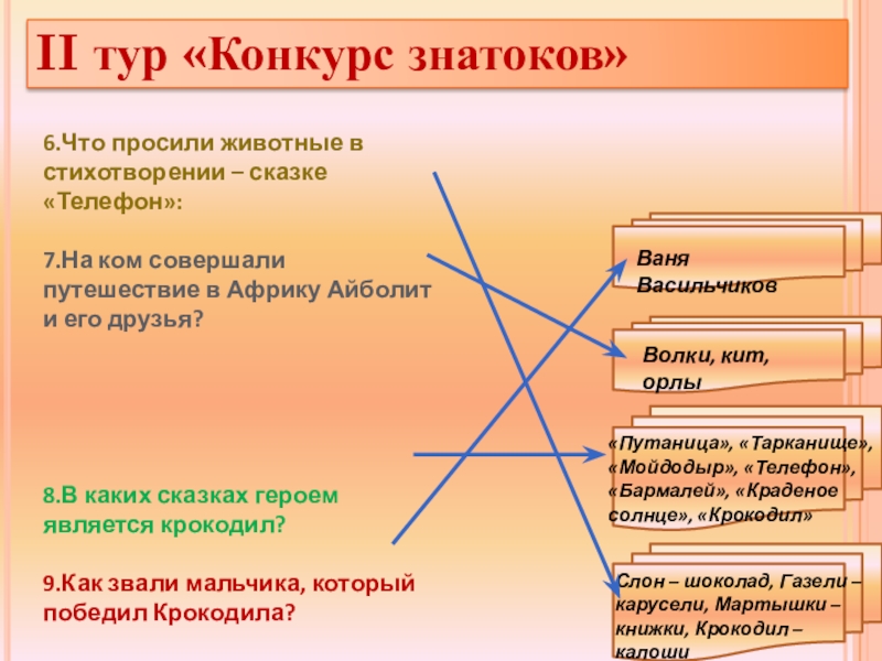 Слон – шоколад, Газели – карусели, Мартышки – книжки, Крокодил – калоши