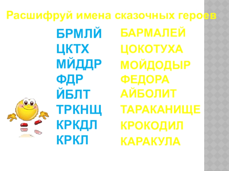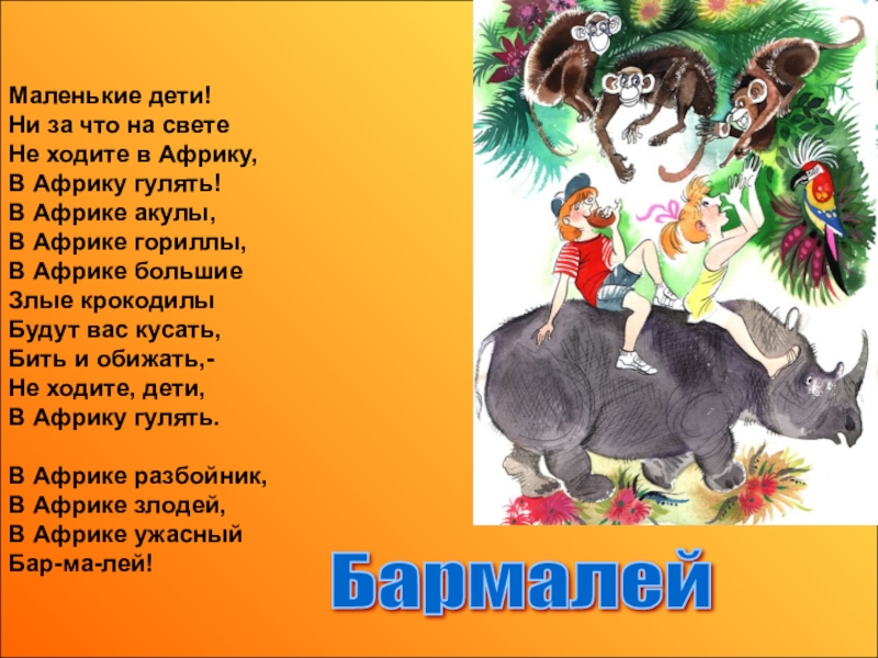 Слон – шоколад, Газели – карусели, Мартышки – книжки, Крокодил – калоши