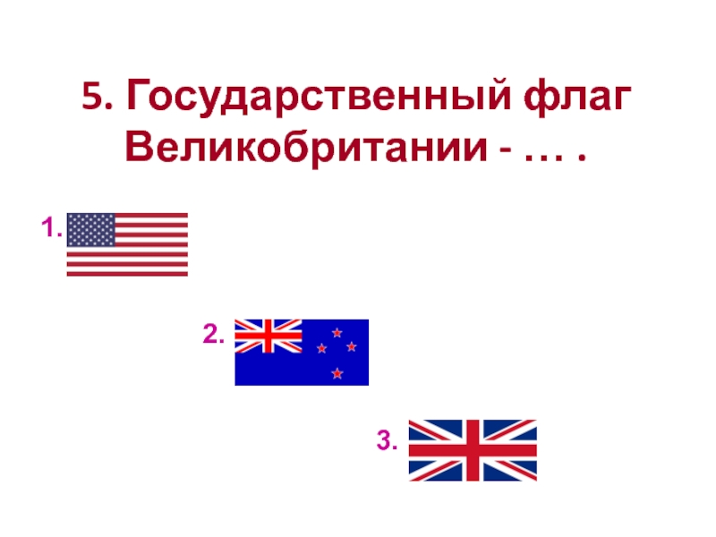 5. Государственный флаг Великобритании - … . 1.  2. 3.