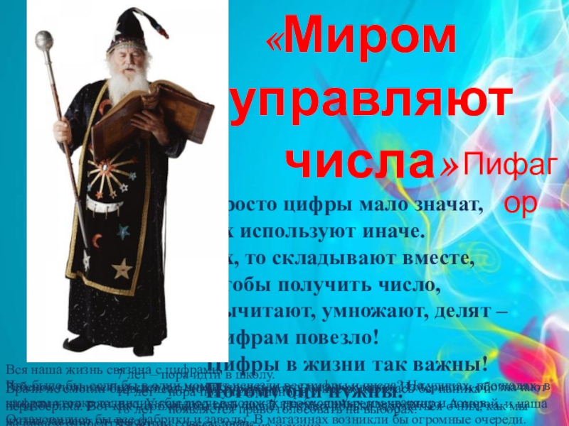 Что было бы, если бы в один момент исчезли все цифры и числа? На улицах, площадях, в каждом уголке толпились бы люди в поисках необходимых им квартир и домов. Остановились бы все фабрики и заводы. В магазинах возникли бы огромные очереди.
