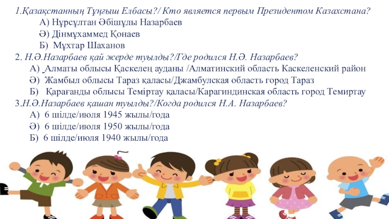 1.Қазақстанның Тұңғыш Елбасы?/ Кто является первым Президентом Казахстана?