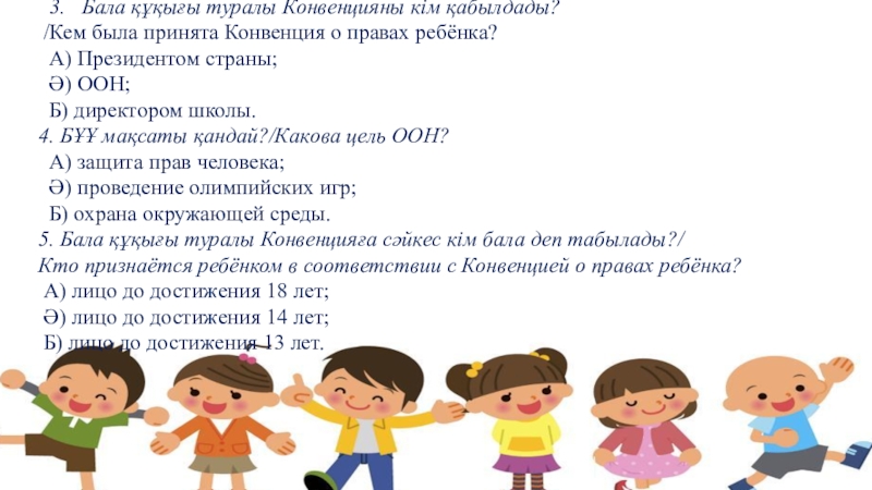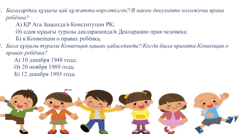 Слайд 5Балалардың құқығы қай құжатта көрсетілген?/В каком документе изложены права ребёнка?