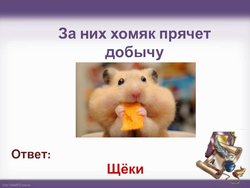 За них хомяк прячет добычу  Щёки Ответ: