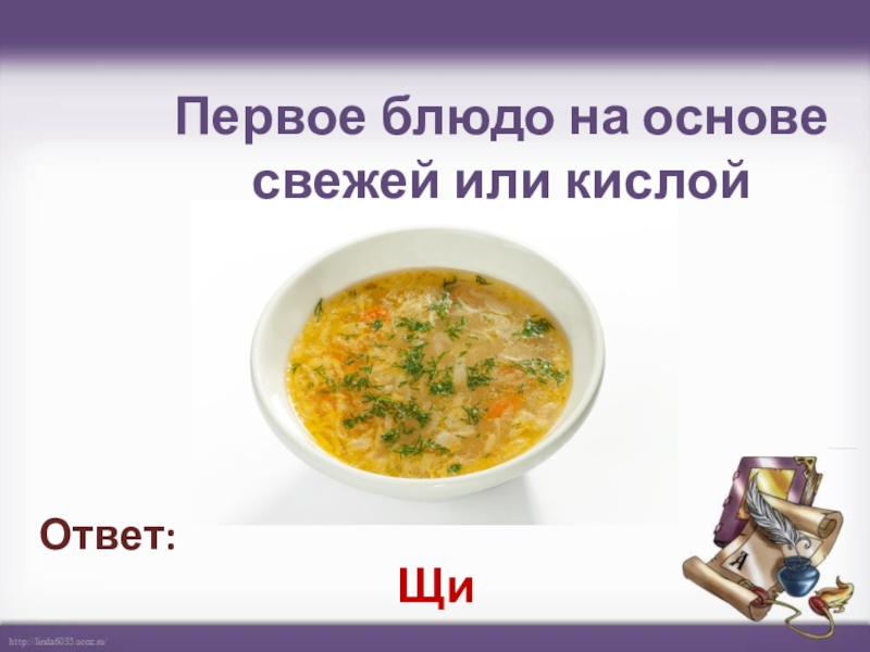 Первое блюдо на основе свежей или кислой капусты Щи Ответ:
