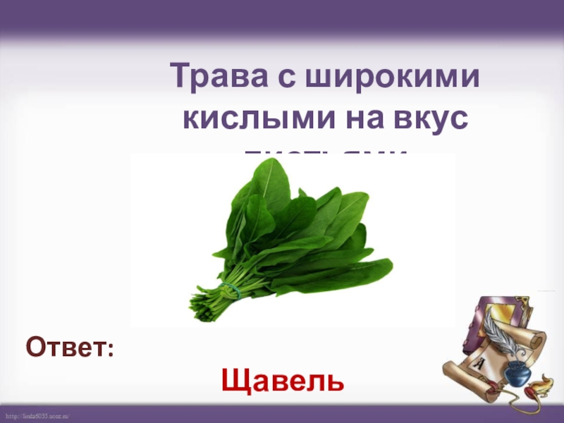 Трава с широкими кислыми на вкус листьями Щавель Ответ: