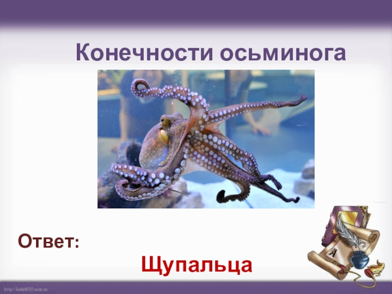 Конечности осьминога Щупальца Ответ: